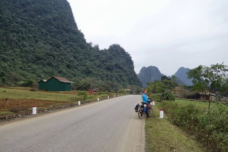 Die Hauptstadt von Laos verließen wir mit teuren Visa für Vietnam in unseren Reisepässen und folgtem dem Mekong auf dem flachen Highway 13 Richtung Süden. Wir kamen richtig schnell voran, im Schnitt 20 km/h zu radeln war ein Klaks! Die Sonne schien angenehm warm auf uns herunter und der Fahrtwind bewahrte uns vorm Schwitzen. Rechts von uns konnten wir immer mal wieder einen Blick auf den breiten Mekong werfen und schon einmal nach Thailand auf der anderen Uferseite herüberwinken. Die Sonne tauchte die Landschaft um uns herum in ein Meer aus Gold, denn auf abgeernteten Reisfeldern standen trockene, gelbe Halme. Hin und wieder wurde das Gold aber auch unterbrochen von tiefem Schwarz. Die Laoten brennen nämlich zu dieser Zeit des Jahres ihre Felder ab, damit sie sie bald wieder neu bewirtschaften können. Nach 2 Tagen bogen wir in Vieng Kham von dem Highway 13 auf die Straße 8 ab, die uns nach Osten in Richtung Vietnam führte. Auf dieser Straße hatten wir kaum noch Verkehr, immer schroffere Berge erhoben sich um uns herum und wir genossen tolle Ausblicke auf die Karstlandschaft.