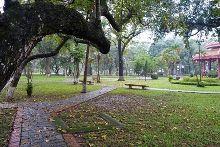Weihnachten rückte immer näher und wir wollten uns ein “gemütliches” Plätzchen mit gutem Essen für die Feiertage gönnen. Unser Ziel war Hue, eine frühere Hauptstadt Vietnams. Um ein wenig Zeit zu sparen entschieden wir uns für kurze Zeit auf dem Highway 1 zu fahren. Die Fahrt auf dem Highway war geprägt von starkem Rückenwind, ohrenbetäubendem Hupen, staubigen engen Baustellen und knapp überholenden Fahrzeugen aller Art. So machte das Radfahren wenig Spaß und wir nahmen uns vor, den Highway 1 so gut es geht zukünftig zu meiden. Wir fuhren schon nach 60 km ab auf eine kleine Straße, die uns zu den Vinh Moc Tunneln direkt am chinesischen Meer führte. Diese Tunnel wurden während des Vietnam-Kriegs gegraben, um das Leben in den Dörfern auch während des ständigen Bombardemands durch die Amerikaner weiterführen zu können. Dafür wurden ganze Dörfer unter der Erde gebaut. Die Vinh Moc Tunnel stellen eins dieser Dörfer dar, welches für die Nachwelt erhalten wurde. Es war absolut beeindruckend und gleichzeitig auch bedrückend durch diese Tunnel zu laufen und sich vorzustellen, wie hier auf kleinstem Raum 600 Leute Tag für Tag lebten und kämpften. Gleichzeitig erhaschten wir bei den Tunneln einen ersten Blick auf das chinesische Meer! Das war das erste Mal seit Istanbul, dass wir wieder am Meer waren. Glücklich rollten wir danach auf einer kleinen Straße am aufgewühlten Meer entlang. Das Wetter passte sich immer mehr der rauen See an und wurde ungemütlich. Wir näherten uns Hue, eine der regenreichsten Städte Asiens. Um nicht wieder auf dem Highway 1 fahren zu müssen, nahmen wir einige Kilometer Umweg in Kauf und fuhren vorbei an Wasserbüffeln, die auf schlammigen Feldern grasten, und Reiern und Enten, die in den unter Wasser stehenden Feldern Nahrung suchten. Die Straße führte uns schließlich kurz vor Hue durch ein Schwemmgebiet, welches total unter Wasser stand. Die Szenerie sah ein wenig unheimlich aus, da die Bewohner diese Schwemmflächen für ihre Friedhöfe nutzen und so immer wieder Friedhofsinseln aus dem Nebel mitten im Wasser auftauchten.