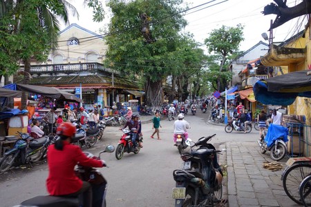 Die alte Handelsstadt Hoi An, etwas südlich des Wolkenpasses gelegen, überraschte uns sehr positiv. Hier fanden wir nicht nur wärmere Temperaturen und weniger Regen vor, sondern trotz der vielen Touristenshops, Restaurants und Hotels bzw. Home stays auch eine tolle Atmosphäre! Wir genossen es einfach, durch die Stadt entlang des Flusses zu schlendern, ein paar alte Versammlungshäuser und Tempel chinesischer Händler anzuschauen und nachts die schöne Beleuchtung zu bewundern. Wir trafen viele Radfahrer, unter anderem auch Penny und Eric und Natascha und Kieran und alte Bekannte aus Bukhara in Usbekistan, Iris und Victor.
