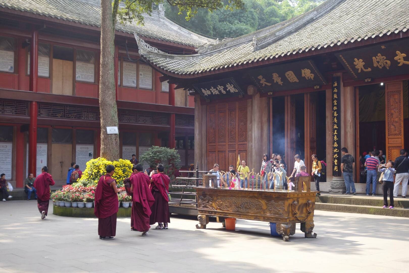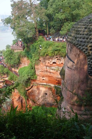 In Leshan wollten wir uns nicht den super großen, in den Berg gehauenen Buddha entgehen lassen, der verantwortlich dafür ist, dass die an ihm vorbei fließenden Flüsse beschiffbar wurden. Ursprünglich war die Strömung des Dadu zu stark, so dass Schiffe ihn nur schwer passieren konnten. Mit dem Bau des Buddhas wollte der Mönch Haitong die unruhigen Gewässer beruhigen. Nach der Vollendung des Buddhas trat tatsächlich ein, was der Mönch erhofft hatte: Die Strömung nahm ab und Schiffe konnten gefahrlos passieren. Ob die Ursache dafür der Buddha selber ist oder die großen Mengen abgetragenen Gesteins, welche in den Fluss geworfen wurden, ist nicht an uns zu beurteilen ;) Die Idee, den Buddha zu besuchen hatten neben uns auch noch zahlreiche chinesische Touristen. Und so wurden wir erstmals mit dem Drängeln um das beste Foto konfrontiert… wir hoffen, uns gut durchgesetzt zu haben ;)